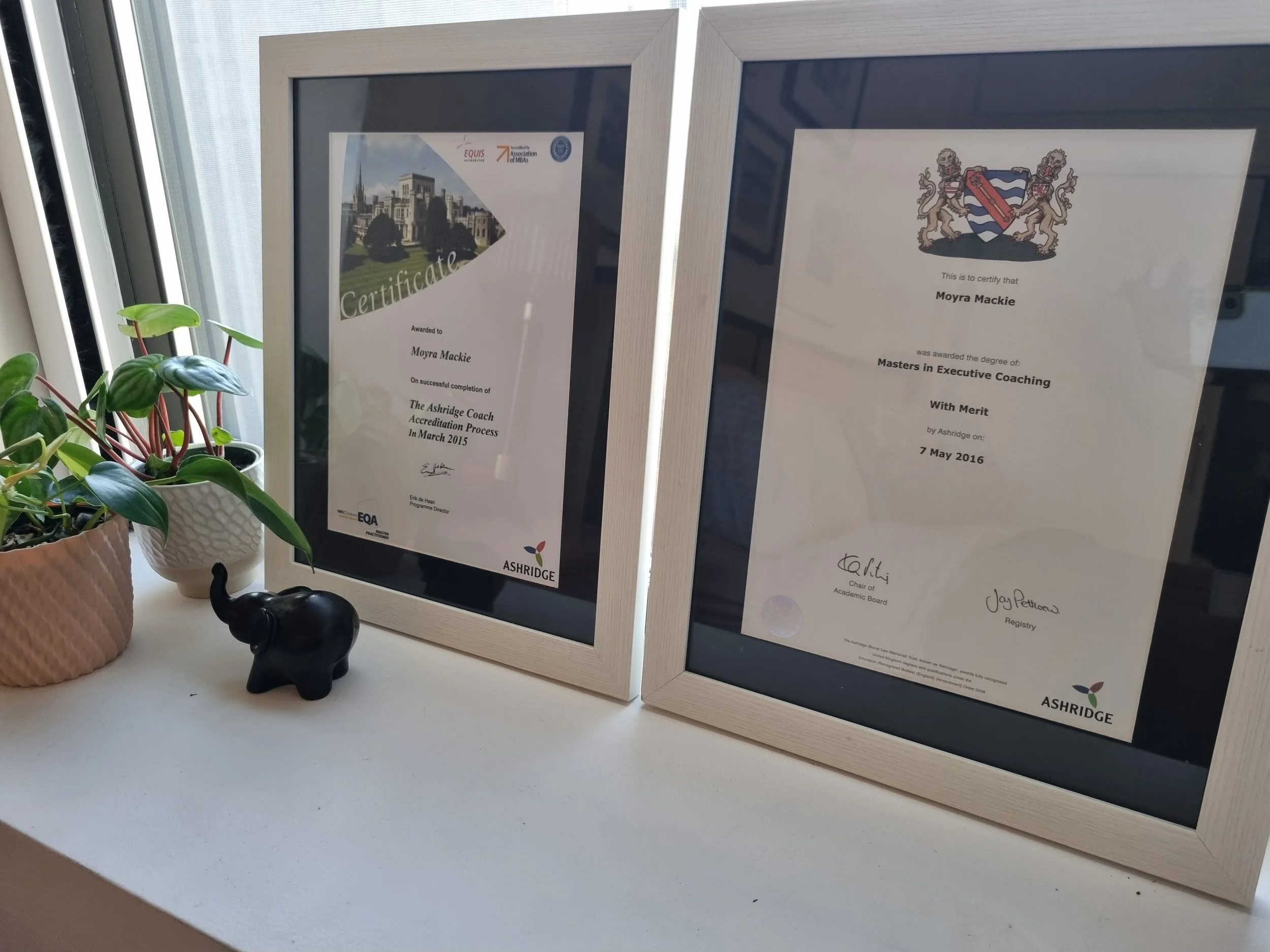 If you look in the footer of this website, you’ll see that I’m accredited with the EMCC at Master Practitioner level. In addition, I have a Masters in Science in Executive Coaching from Ashridge Hult Business School.